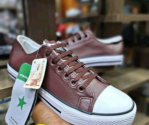 Brown leather converse